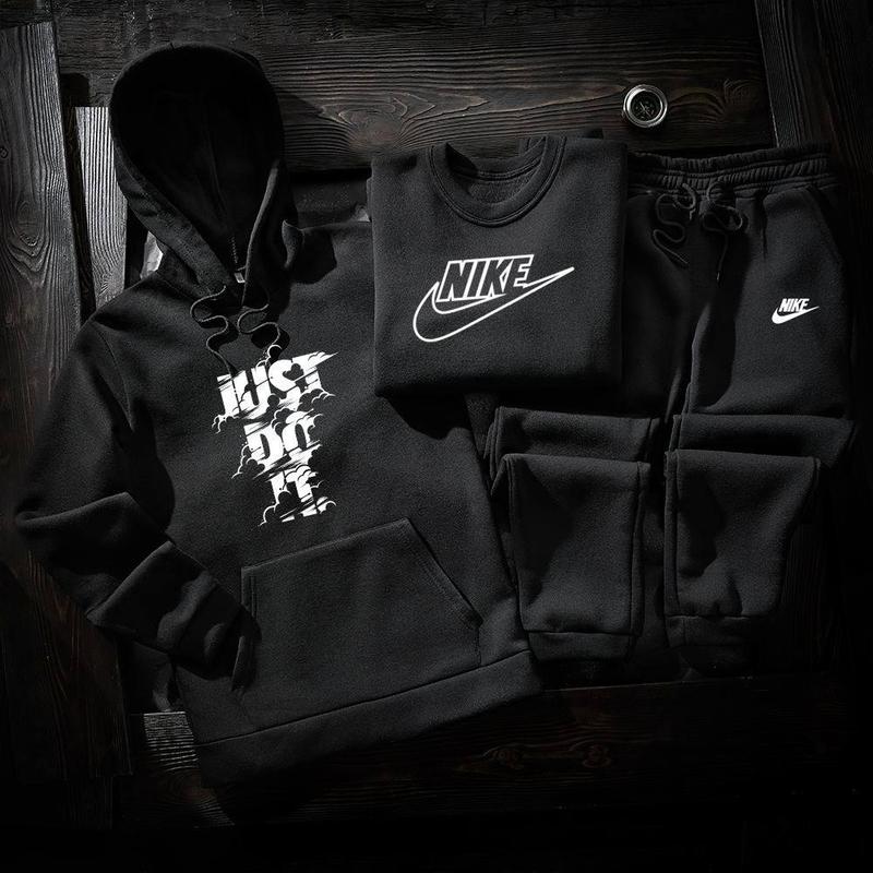 Теплый комплект на флисе 3 в 1 (худи, свитшот и штаны) черного цвета
