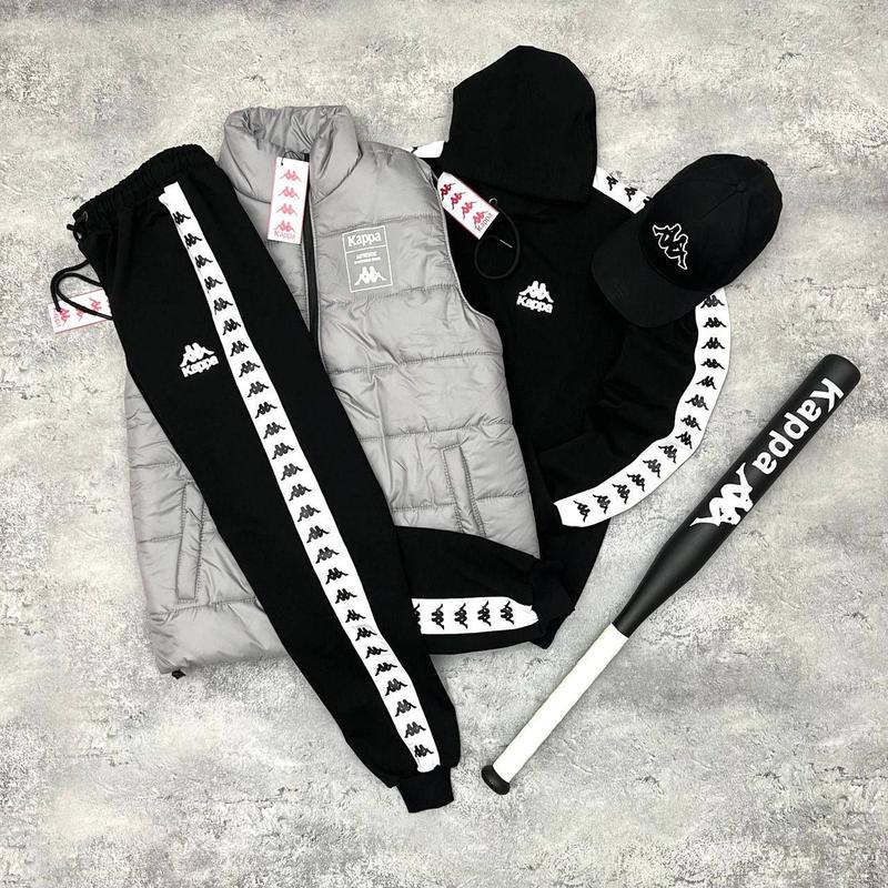 Комплект 4в1 Жилетка + Худи + Штаны + кепка KAPPA LAMPASS💥 Сезон: ВЕСНА/ОСІНЬ 🔥4в1: Жилетка + Худи + Штаны + кепка = 2649 грн. Костюм: ткань турецкая двунить Склад - Бавовна/Елестан 80/20 Брюки на манжете, карман на замке, логотип - качественный термотрансфер Жилетка: материал Canada Наполнитель синтепон 200 Кепка: материал- хлопок, логотип - вышивка. Размеры: S, M, L, XL, XXL