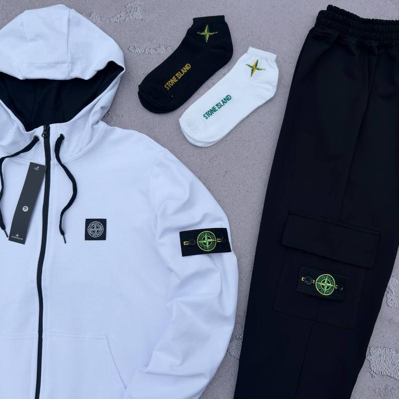 Костюм STONE ISLAND соп худи и штаны 2 пары носков в подарок Материал Турецкая двухнить бавовна 95%, 5% еластану Цвет: черный, белый, мята кофта, штаны черные Модель: унисекс Сезон: весна/лето/осень Размер: XS, S, M, L, XL, XXL, XXXL