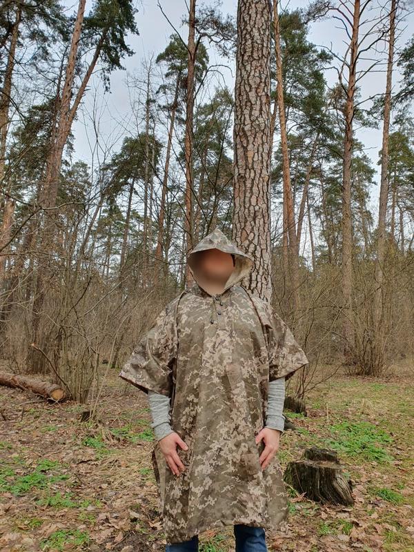 Тип тканини: Водовідштовхувальна Матеріал: Плащівка Розмір: Універсальний Шви проклеєні для додаткового вологозахисту Розмір плаща: 140 х 100 см (+-5см) Вага пончо: 350 гр Виріб оснащений двома кнопками по центру дощовика. Чохол у комплекті Колір: піксель блідо-зелений Капюшон з'єднаний з накидкою Ідеальна в дощову погоду, коли потрібна свобода руху