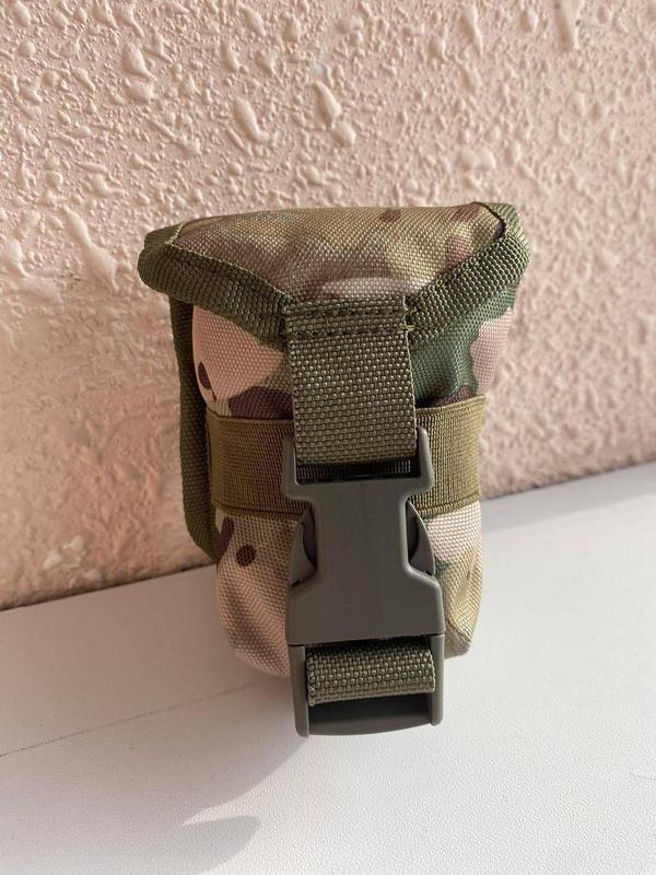 Сумка для переноски и хранения гранаты (мультикам) Сумка предназначена для переноски и хранения гранаты. Особенности: сумка для гранаты надежно фиксируется на любом снаряжении или на поясе благодаря креплениям системы MOLLE; он защищает гранаты от царапин и различных климатических факторов; инновационная система MOLLE предназначена для подключения к другому боевому снаряжению и военной одежды; прочный материал; обладает водоотталкивающими свойствами; регулировка застежки фастекса позволяет адаптировать результат под содержимое разной длинны. система крепления МОЛЛЕ (MOLLE) позволяет использовать из любыми разгрузками, тактическими поясами и бронежилетами. Характеристика: Размер: 12×10×6 Цвет: мультикам ткань: основной материал Oxford 600D.