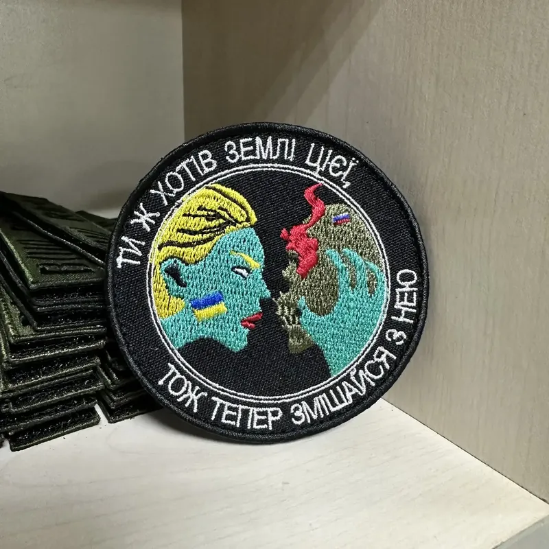 №175 шеврон "ти ж хотів землі цієї, тож тепер змішайся з нею" 8.5 см
