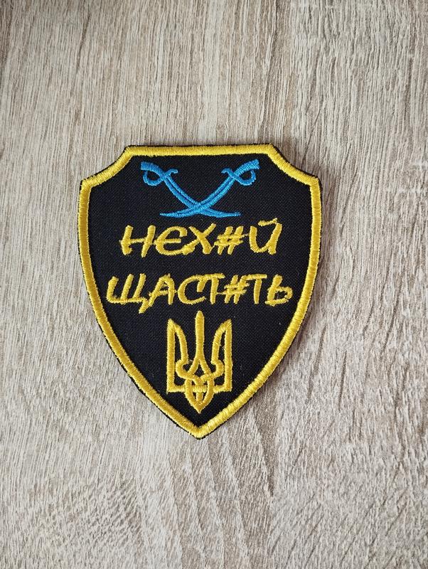 Щеврон Нех#й Щаст#ть с трезубом. Вышивка. На липучке Любые шевроны под заказ. Быстрое исполнение шевронов нашивок патчей.