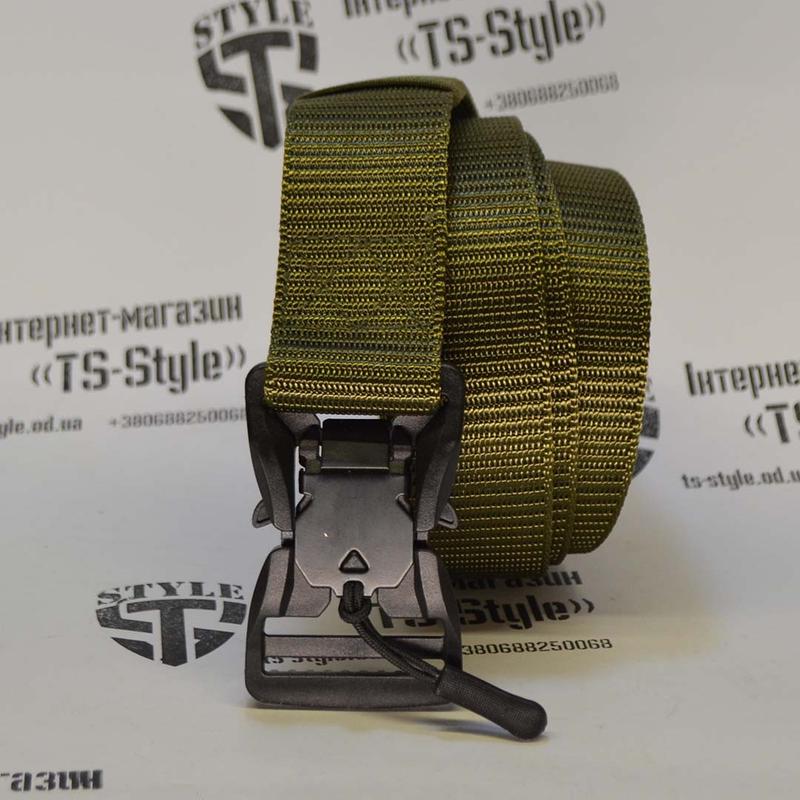 Оснащений високоякісною магнитною роз'ємною пряжкою типу "Пітон". Такою назвою вона зобов'язана своєю формою, що нагадує голову змеї. Це швидкороз'ємна пряжка. Для того щоб її закрити або відкрити потрібно всього одна секунда. У польових умовах це дуже зручно. Пряжка виготовлена зі сплаву цинку. При відносно малій вазі вона виявляється досить міцною. Замок здатний витримати силу в 1.4 кН, при цьому сам ремінь здатний витримати 2.4 кН. Це більше двох тонн. Сам пояс виготовлений з нейлонової кордури легкого, міцного, швидковисихаючого матеріалу, здатного витримувати великі навантаження. Пояс має регульовану довжину до 125 см і ширину 38 мм. Це знімає залежність від фігури людини і дозволяє надійно закріпити на ньому всю необхідну амуніцію. Краї мають якісну обробку, шви рівні без стирчащих ниток. Пояс має гумовий тренчик, який надійно утримує вільний кінець ременя. Якість виготовлення на висоті.