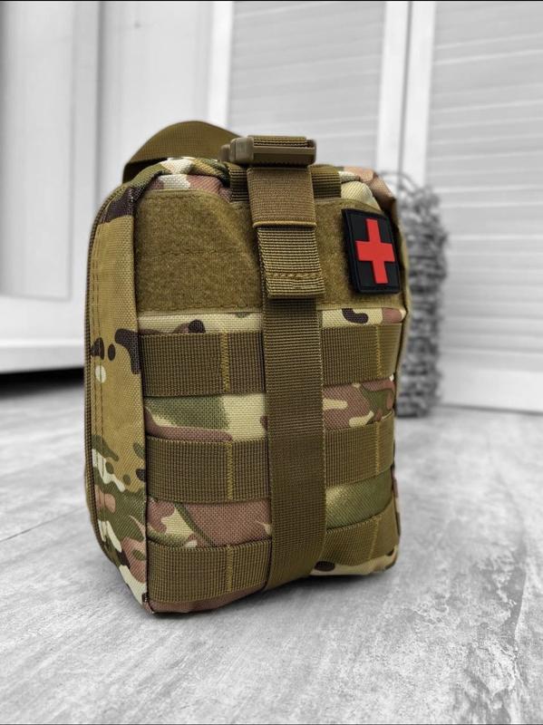 Индивидуальная аптечка первой помощи IFAK M.O.L.L.E. System Individual Kit предназначена для оказания первой медицинской помощи, до прибытия медиков самостоятельно устранить экстренное кровотечение конечностей, повреждение грудной клетки и другие жизнеугрожающие состояния. Не путать с дешёвым аналогом. Размер аптечки: 10*15*20 см (0,9 кг) В состав аптечки включены высококачественные составляющие: 1) Компрессионный бандаж с одной подушкой (сертификат прилагается ) 2) Сертифицированный ЕС Турникет (сертификат прилагается ) 3) Ножницы тактические 4) Респиратор для искусственного дыхания 5) Пинцет 6) Йодированные салфетки 7) Пластырь в количестве 2 штуки 8) Бинт 9) Спиртовые салфетки 10 ) Бандаж - Косынка 11) Бандаж для иммобилизации костей и повреждений мягких тканей 12)Антисептические салфетки 13) Термоодеяло 140*210 для сбережения температуры тела 14) Ватные палочки 15) Скрепки 16) Тактический подсумок M.O.L.L.E из ткани кордура 600 ден (водонепроницаемый) 17) Маркер для фиксации времени накладки турникета 18)Оклюзивная повязка - 2 шт 19)Назофврингальная трубка - 1 шт 20)Игла для декомпрессия - 1 шт 21)Перчатки стерильные - 1 шт