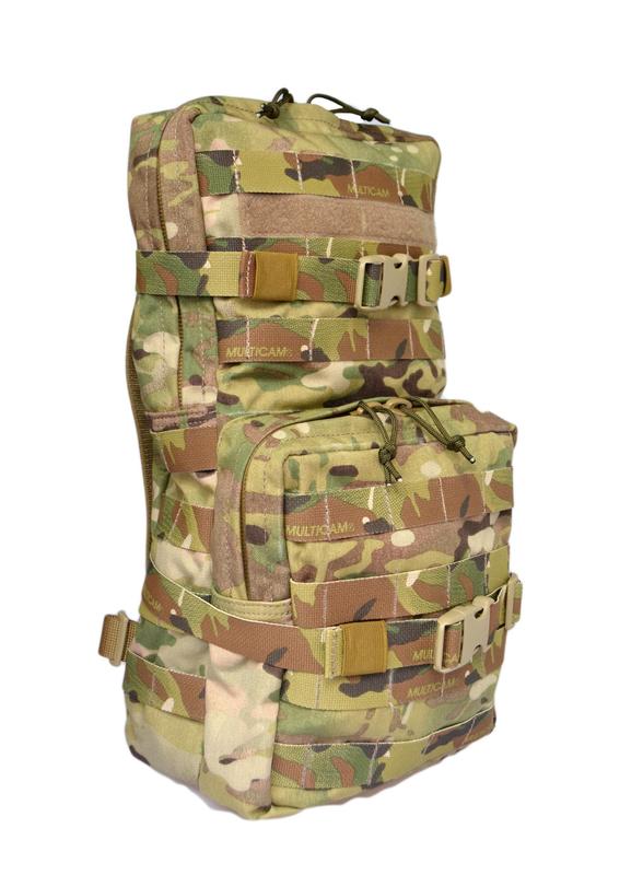 Материал: Cordura 1000d. (США NIR) Фурнитура: 2М. Цвет: Multicam. Стропы: TEXCEL Объём: 12 литров. Габариты: 40х20х15 см. Крепится на бронежилеты и разгрузки с помощью молле. Возможно использовать как обычный рюкзак за счет съемных лямок ( в комплект не входят) Имеет два отдела на молнии, плюс в большом отделении вставка для установки гидратора емкостью до трех литров. Имеет систему утяжек на фастексах. Люверсы для стока воды.