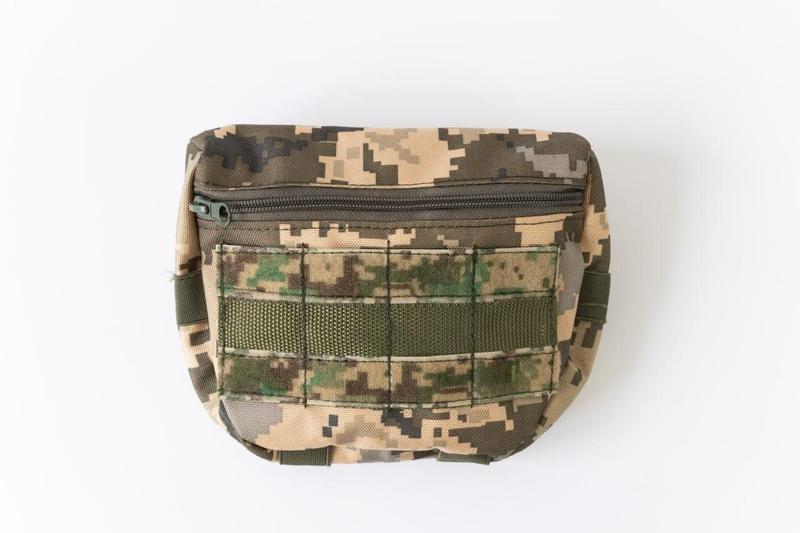 Якісний матеріал та міцний шов забезпечують надійність та довговічність Ідеальний вибір для військових, любителів полювання та пейнтболу, а також для всіх, хто шукає якісний та надійний підсумок напашник. Усередині підсумка розташована ще одна кишеня та еластична гумка для кріплення дрібного приладдя. Передня частина підсумку виконана із системою моллі, на якій розташована велкро липучка. З обох боків підсумка передбачена гумка для додаткового кріплення приладдя. У нижній частині підсумку розташовано кріплення для турнікету. Можливе кріплення ззаду Розміри: 23*13,5*5,5 см