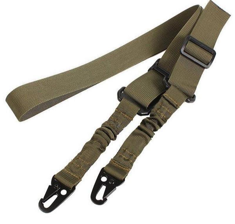 Тактичний двоточковий ремінь для карабіна, рушниці, гвинтівки, автомата Резинки, що амортизують Металеві карабіни Регулювання довжини з двох сторін Розмір: Ширина 3.1 см Довжина 150 см