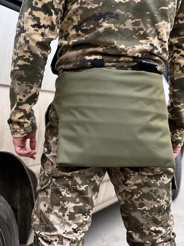 - материал: oxford; - тканина має водовідштовхувальну підкладку; - всередині спінений поліетилен 5мм; - кріпиться до пояса за допомогою механізму фаст; - пояс регулюється по довжині; - дає додатковий захист сідницям та попереку від вітру /дощу/ холоду.