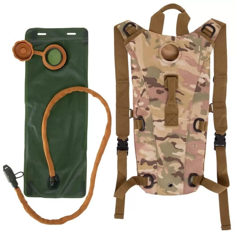 Питна система виготовлена брендом KMS, давно зарекомендувала себе як надійний супутник військових та туристів. Призначена для підвищення рівню комфорту при довгих переходах та спрощує гідрацію організму. Може використовуватися як окремий аксесуар, так і вміщуватися всередину рюкзака. В комплект поставки входить міні рюкзак та внутрішня ємність (так звана «медуза») для води. Попри наявність розмітки до 3 л, виробник радить наповнювати її до 2,5 л. для покращення експлуатаційних характеристик. Вставки з EVA-піни в спинці збільшують комфорт та покращують циркуляцію повітря. Розміри в наповненому стані: 45х22х18 см Вага пустого гідратора приблизно 420 грамів