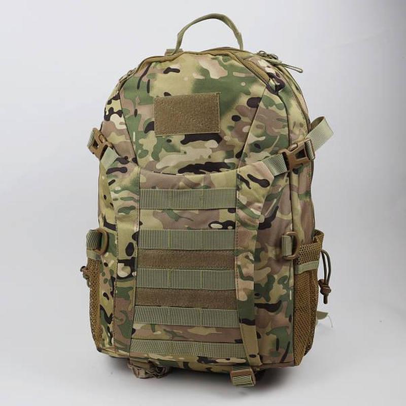 Лаконічний рюкзак. Цупкий матеріал, достатьно жорстий, але в той же час зручний та комфотний в експлуатації. Має одне відділення, з карманом на липучці. Оснащений жорстою та ергономічною спинкою, яка забезпечить циркуляцію повітря, а також м'якими регульованими лямками зі шлейками, які дають можливісь на протязі довгого терміну та з комфортом носити рюкзак на спині. За рахунок фіксуючих лямок на грудях та поясі - зручний при переміщенні бігом. Посилена верхня ручка гарантує надійність при підвищених навантаженнях. Характеристики: Матеріал: Оксфорд D600, всередині з водовідштовхувальним шаром; щільний (тримає форму) має одне відділення на блискавці з кишенею; внутряшня кишеня може використовуватись для ноутбука або інших гаджетів; спереду кішені для дрібних речей та фіксації каремату; регульовані зручні плечові лямки; жорстка ергономічна спинка для циркуляції повітря; регульовані лямки для фіксації на поясі та грудях; посилена верхня ручка; бокові кармани-сітки, які фіксуються ; рюкзак обладнаний стропами кріплення доп підсумків та обвісу на MOLLE. Особливості Водовідштовхувальне просочення, Поясний ремінь, Анатомічна конструкція, Грудна стяжка, Шлейки анатомічної форми, Система підвіски Molle Габаритні розміри Висота 50 см Ширина 20 см Довжина: 35 мм