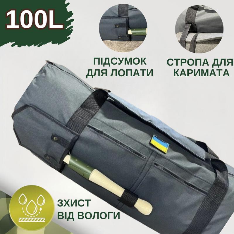 Баул армейский 100л серый + подсумок для лопаты и стропы для каримата, тактическая сумка