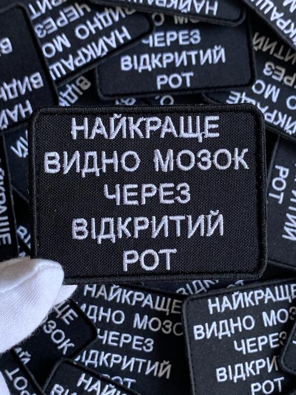 #419 шеврон лучше всего виден мозг через открытый рот, 8*6 см