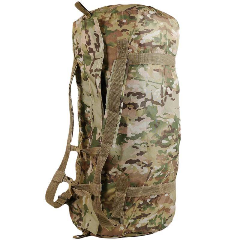 Великі баули мають популярність у кожній армії, призначені для перенесення індивідуальних речей і спорядження бійця. Циліндрична форма баула дає змогу переносити в ньому речі різної форми, як-от спальний мішок, невеликий каремат, особисті речі, різне спорядження. Баул 120 виготовлений із посиленої тканини Oxford 600D, з водонепроникним просоченням. Конструкція баула передбачає його перенесення двома способами: - на плечах (як рюкзак) - у руці Для цього баул обладнаний двома м'якими лямками з міцної стропи завширшки 5 см. Лямки дають змогу носити баул на спині як рюкзак, і в руках як звичайну сумку. Усі стропи прошитий посиленими швами високоякісною ниткою. Зсередини периметром шви оброблені та зміцнені окантовною стрічкою. Фурнітура: 100% Поліамід відповідає технічним вимогам Міністерства Оборони України. Загальний об'єм баула — 120 л. Є потайна кишеня всередині баула, яка застібається на блискавку. Для зручнішого використання наповненого баула передбачений фастекс, який застібає на грудях 2 лямки в положенні рюкзака. Розміри баула: -довжина: 82 см - Діаметр: 42см