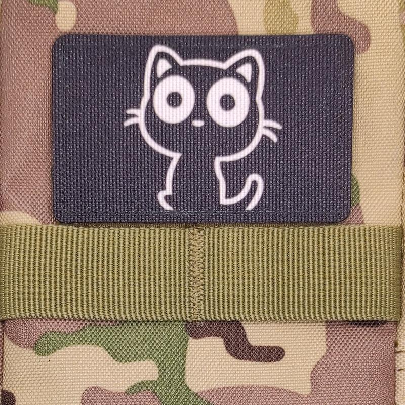 Котик, патч печатный Размер - 8х5 см. Способ крепления - липучка (велкро). Основа - ткань Оксфорд. Способ изготовления - сублимационная (водостойкая) печать. Прошит по контуру Использованы водо и износостойкие материалы. Лазерная обработка края.
