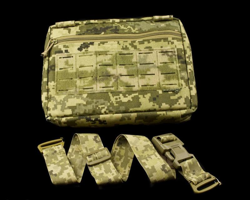 Макс.розмір планшету 12,9”, 21х28 см. Має зручну систему зміни єднання ременю до сумки Обидві стінки сумки мають демфер ( EVA 0,5 см) На обох стінках з‘ємні панелі на липучці, усередені кожної панелі пластикові вставки для пружності З‘ємні панелі мають лазерні отвіри для кріплення утримувачів( резинка та застібки для кабелів) Між планшетом та панеллю з кабелями передбачено демпферну стінку для захисту екрану На демферній стінці є утримувачі для маркерів , олівців та кешені під карти, а також з‘ємний утримувач для регулювання посадки планшету по горизонталі. Задня стінка сумки має стропи та моллє за для можливості кріплення на плитоноску Ремінь : поліамідна стропа ММ-14, 4 см, з налаштуванням потрібної довжини, має міцний фастекс, та зручні карабіни Матеріал сумки ММ-14 CORDURA 1000den PU, , матеріал підкладки нейлон 200 den, coyote Зіппер від Max Zipper На фасаді додаткова кишеня Липучка MM-14 lazer cat poliamid 100%