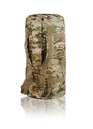Сумка-баул 80л Kiborg мультикам Большие баулы пользуются популярностью в каждой армии, предназначенные для переноски индивидуальных вещей и снаряжения бойца. Цилиндрическая форма баула позволяет переносить в нем вещи разной формы, такие как спальный мешок, небольшой каремат, личные вещи, разное снаряжение. Баул Kiborg 80 выполнен из усиленной ткани Oxford 600D, с водонепроницаемой пропиткой. Конструкция баула предполагает его переноску двумя способами: - на плечах (как рюкзак) - в руке. Для этого баул оборудован двумя мягкими лямками из крепкой стропы шириной 5 см. Лямки дают возможность носить баул на спине как рюкзак, и в руках как обычную сумку. Все стропы прошит усиленными швами высококачественной нитью. Изнутри по периметру швы обработаны и упрочнены окантовочной лентой. Фурнитура: 100% Полиамид отвечает техническим требованиям Министерства Обороны Украины. Общий объем баула - 80 л. Имеется потайной карман внутри баула, который застегивается на молнию. Для более удобного использования наполненного баула предусмотрен фастекс, который застегивает на груди 2 лямки в положении рюкзака. Размеры: -длина: 74см -Диаметр: 37,5см