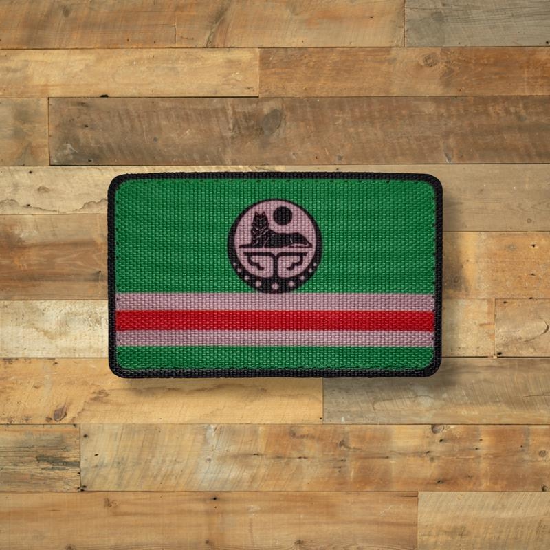 Флаг Ичкерии, патч печатний. Размер - 8 х5 см. Способ крепления - липучка (велкро). Способ изготовления - сублимационная (водостойкая) печать. Использованы водо и износостойкие материалы. Лазерная обработка края.