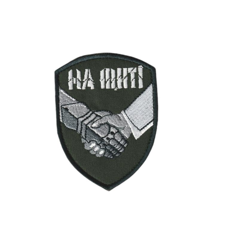 Шеврон военный / армейский,на щите эвакуация павших, оливка, 9 см * 7 см