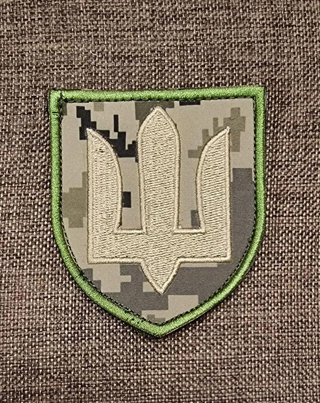 Ціна вказана за 1 шт Шеврон "Тризуб - піксель" Розмір: 70х80мм Колір основи: Олива Кріплення: липучка, жорстка частина