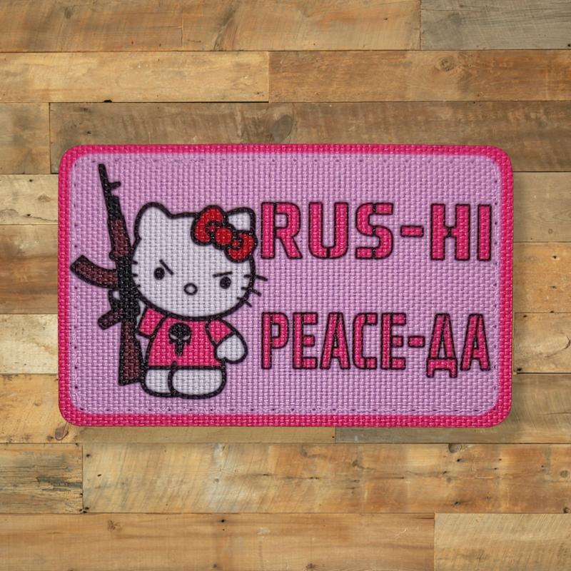 Hello Kitty, патч печатный Размер - 8х5 см. Способ крепления - липучка (велкро). Способ изготовления - сублимационная (водостойкая) печать. Прошит по контуру Использованы водо и износостойкие материалы. Лазерная обработка края.