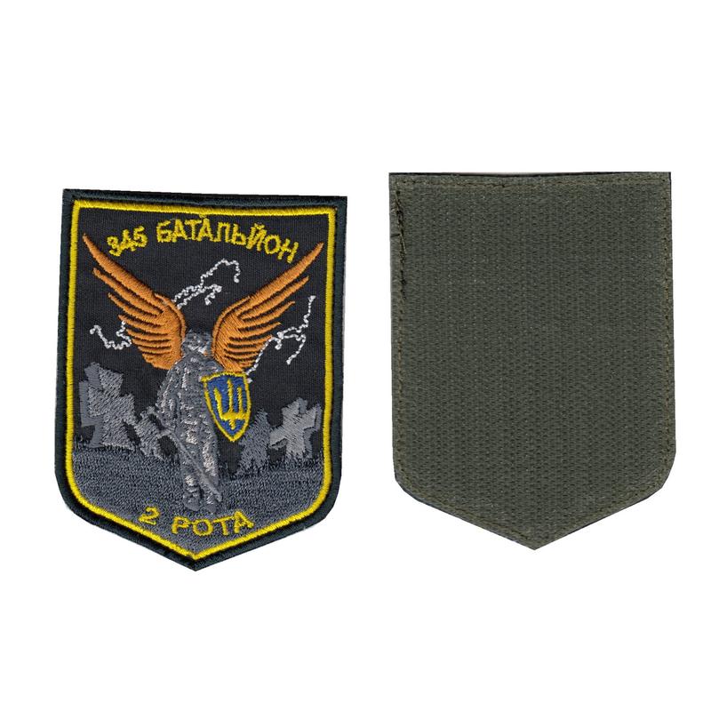 Шеврон ВСУ, военный / армейский, 345 батальон, на липучке, на черном. 9 см * 7см