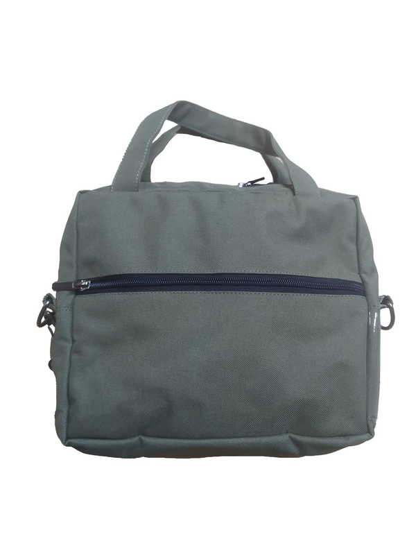 Сумка выполнена из прочной ткани. В средние сумки есть подкладка из ткани рип стоп. Размер: 260х220х70 мм. Имеет одно основное отделение на молнии, в котором два кармана для мелочей и телефона, а также один отсек для валидатора и один отсек для документов. На внешней части сумки карман на молнии. На одной из боковых частей изделия нашит накладной прозрачный кармашек для переменной информации из прозрачной прочной пленки. На сумке две ручки из ткани для удобного ношения в руках также есть дополнительный съемный регулируемый плечевой ремень с прочной ленты шириной 40мм. Размер изделия: 260х220х70 мм. Материал: Oxford 600D PVC WR, водоотталкивающий. Цвет: Olive green хаки.