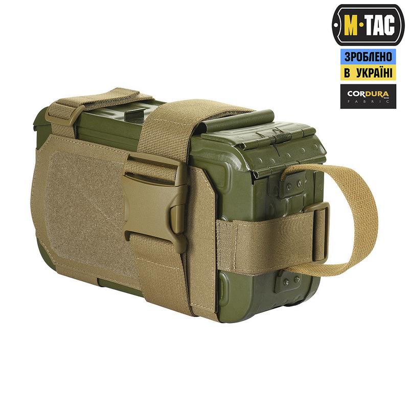 Открытый подсумок под пулеметный короб ПКМ от бренда М-ТАС. Данная разработка позволяет удобно переносить и при необходимости быстро применить короб во время выполнения боевых задач. Изготовлен из высокотехнологичного материала Cordura Squadron – сверхпрочной ткани, устойчивой к истиранию и высоким нагрузкам. Подсумок имеет двухсегментную конструкцию, состоящую из чехла для короба и платформы на велкро с посадочным элементом, что обеспечивает его фиксацию или быстрое применение. Подсумок надежно фиксирует короб с помощью боковых строп и велкро липучек. Благодаря этому данная модель предназначена для правостороннего и левостороннего ношения. Удерживающим элементом короба является велкро панель с посадочным элементом. Фиксирующим элементом является стропа Murdock с фастексом WJ, которая соединена с основной платформой. Крепиться к снаряжению с помощью MOLLE интерфейса, выполненного по технологии Laser Cut. Данное изделие не совместимо с мягкими коробами и коробами других моделей пулеметов. Материал: Cordura Squadron Стропы: Murdock Фурнитура: WJ