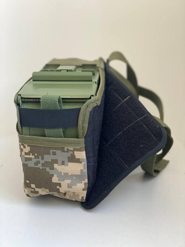 Підсумок під кулеметний короб ПКМ дозволяє зручно переносити та при необхідності швидко застосувати короб під час виконання бойових завдань. Характеристика: - 2 міцні тасьми забезпечують фіксацію короба усередині підсумку; - додаткова фіксація за допомогою фастексів ; - з відривною спинкою, швидко знімається; - універсальна система MOLLE з фіксаторами забезпечує надійність кріплення підсумка; - підсумок пошитий горизонтально, спеціально по проханням військових. - Матеріал: виготовлений із водовідштовхувальної тканини Oxford 600D у два шари.