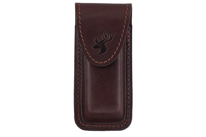 Чехол для складных и многофункциональных ножей из натуральной кожи коричневого цвета с фиксатором в виде липучки (Velcro). Липучка дает больше свободы при регулировании размера чехла - размерный люфт в данном случае может достигать 1 см, что очень немаловажно при подборе чехла к ножу! Чехол изготавливается из ременной кожи толщиной 3-3.5 мм, прошит капроновой нитью в цвет кожи. Подходит для ношения на ремне шириной до 50 мм. Чехлы от Svarog также подойдут для ношения небольшого фонарика, огнива или брусочка для правки ножа.
