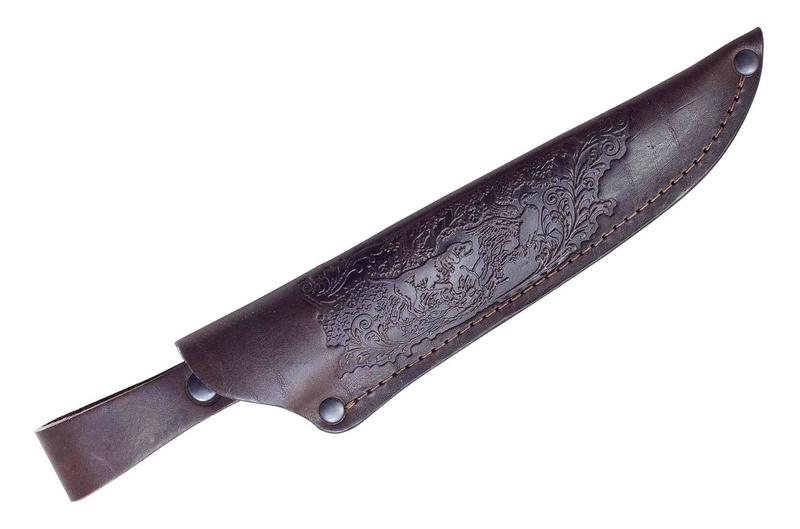 Чехол (ножны) для нескладного ножа без гарды изготовлен из натуральной кожи первого сорта, толщиной 3.0-3.5 мм. ДАННЫЙ ЧЕХОЛ ЯВЛЯЕТСЯ УНИВЕРСАЛЬНЫМ И ПО СВОИМ ГАБАРИТАМ ПОДХОДИТ ДЛЯ МНОГИХ ВИДОВ НЕСКЛАДНЫХ НОЖЕЙ СРЕДНИХ РАЗМЕРОВ. Данный чехол предназначен для ношения нескладных ножей без гарды. Чехол имеет кожаную петлю, в которую продевается поясной ремень. Максимальная рекомендуемая ширина ремня ― 50 мм. Длина чехла ― 210 мм (без петли для ремня) Ширина (по верху) ― 40 мм Страна производитель - Украина. Чехол есть в двух цветах: - чёрный; - коричневый.