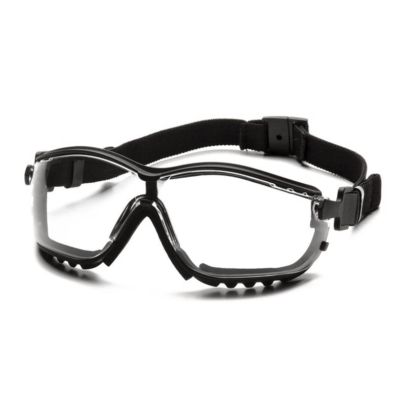 Універсальні балістичні захисні окуляри з можливістю установки діоптрій Захисні окуляри V2G від Pyramex (США) Характеристики: - колір лінз - прозорий; - матеріал лінзи - полікарбонат ( Meets Military Specifications); - світлофільтр UV400 (максимальний захист від ультрафіолету); - Anti-Fog покриття (захист від запотівання); - захист від подряпин (спеціальне покриття на лінзах, яке подовжує термін їх експлуатації); - м'які носоупори (інтегровані в ущільнювач); - хороша оглядовість; - бездоганний бічний захист. Особливості: - м'який неопреновий ущільнювач (захист від вітру і пилу); - ущільнювач володіє вогнетривкими властивостями (важливо при роботі з болгаркою або зварюванням); - універсальне кріплення (окуляри на ремінці з замочком; ремінець регулюється по довжині і може бути замінений на дужки, які входять в комплект поставки); - ущільнювач теж зйомний (тобто. Дана модель є універсальною, адже ці окуляри одночасно є окулярами закритого типу і відкритого, тобто можуть використовуватися як з ущільнювачем, так і без; як з ремінцем, так і з дужками); - регулювання кута нахилу дужок (дозволяє відрегулювати окуляри з урахуванням індивідуальних анатомічних особливостей); - регулювання дужок по довжині; - регульований кут атаки лінз (дозволяє компенсувати зазори на обличчі, і забезпечити більш надійний захист від дрібних фрагментів); - отвори у верхніх куточках лінз (додаткова вентиляція). Повний огляд