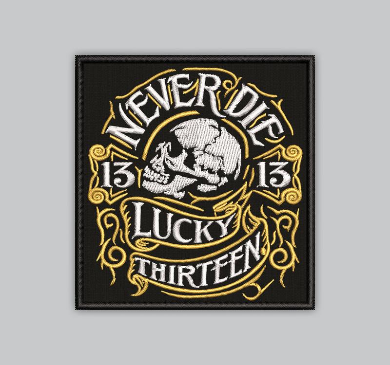 Шеврон "never die 13 lucky thirteen sticker skull", высота 9 см