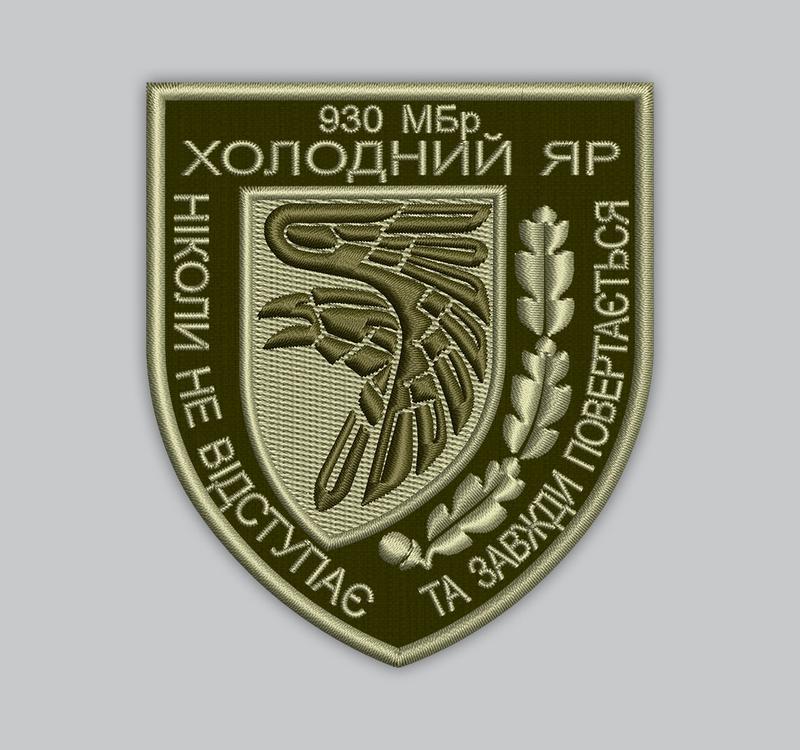 Шеврон "930 мбр холодный яр никогда не отступает и всегда возвращается", высота 9 см