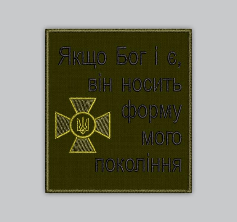 Шеврон "если бог и есть, он носит форму своего поколения ", высота 9 см