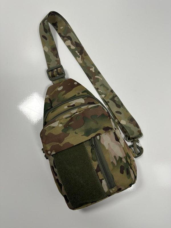 Тактическая сумка-мессенджер - мужская функциональная сумка с одной шлейкой, с двумя отделениями разных размеров и карманами. Такую сумку можно носить на груди, на одном плече или через плечо на спине. Шлейка регулируется по длине. Особенности: - одно основное отделение на молнии; - два кармана на молнии лицевой стороны; - удобная, компактная сумка. Характеристики: Ткань: основной материал Oxford 600D. Размеры (ШхВхГ): 19х31х6.