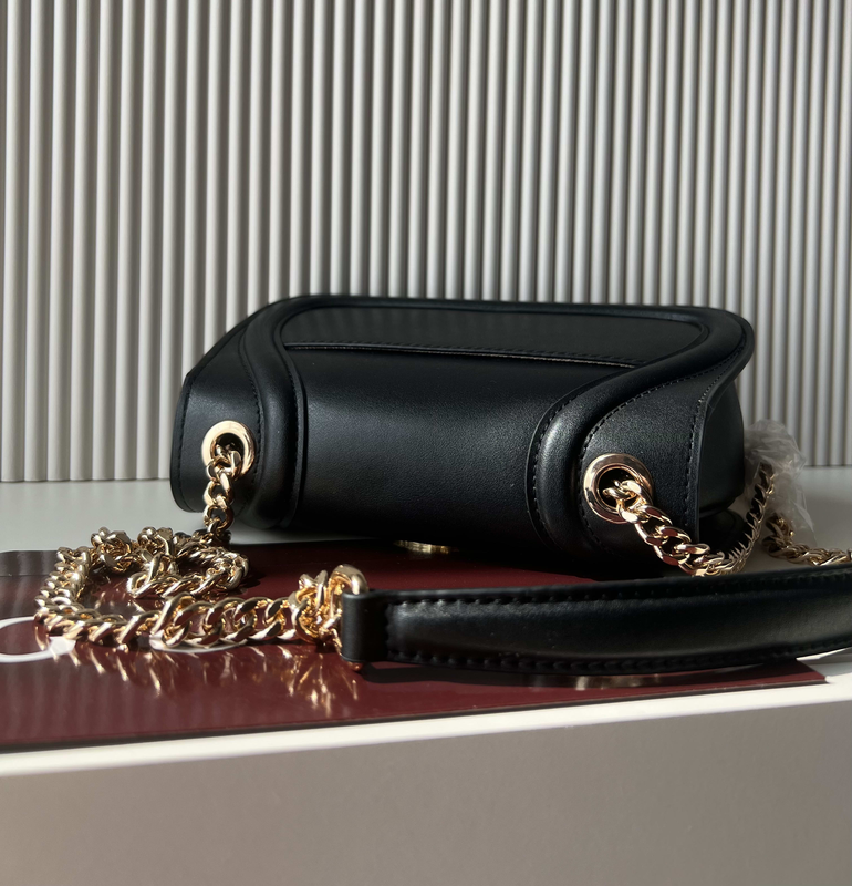 • Размер: 21 х 13 х 7,5см • Материал: Кожа • Упаковка: брендовая коробка на магнитах, пыльник, буклет. • Сумка изготовлена из кожи черного цвета. • Внутри одно основное отделение, есть один маленький карман, также снаружи позади карман. • Подкладка у сумки тестильная. • Сумка закрывается на магнитную застежку. Плечевой ремень-цепочка. • Black KANG-5023
