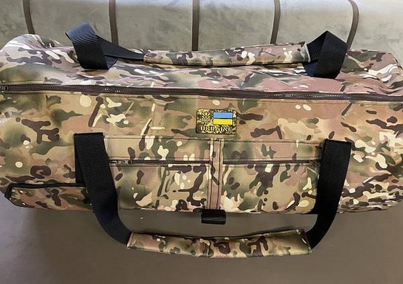 Сумка имеет дополнительные крепления для малой саперной лопаты и каримата. Изделие выполнено из прочной ткани Kodura tkanina poliestrowa premium 600D*300D PVC. Используется молния тракторного типа №5 с двумя бегунками. молния тракторного типа №5. Сумка-баул с двумя нейлоновыми лямками, что позволяет носить сумку на спине как рюкзак, так и в руках как обычную сумку. Дополнительная ручка для перенос расположен в торце баула, что делает его удобным для подтягивания и переноса в вертикальном положении. Этот баул будет полезен для рыбаков, охотников, военных, туристов, любителей активного досуга. Размер 90*40*40. Внутренняя сторона имеет подкладку.