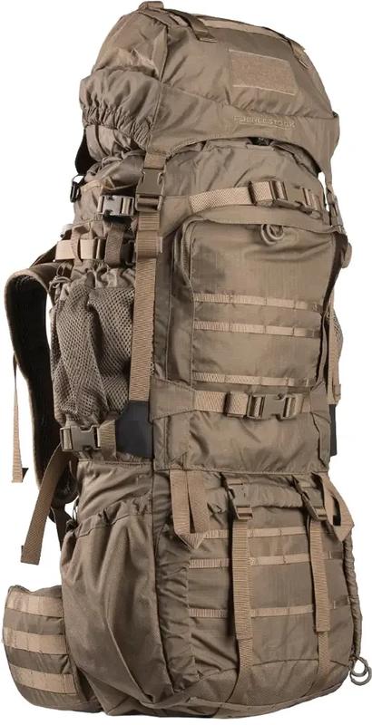 Рюкзак Eberlestock Destroyer, объемом 60 литров, имеет функцию как верхней, так и передней загрузки. Изготовлен рюкзак из износостойкого и водонепроницаемого нейлона 420D с плетением Rip Stop. Система регулированных наплечных ремней и широкий съемный поясной ремень позволяют отрегулировать рюкзак под индивидуальные особенности. Снаружи модели Destroyer размещены компрессионные ремни, которые обеспечивают регулировку объема и оптимальное распределение веса. Объемное основное отделение позволяет удобно расположить все необходимое снаряжение. Пространство основного отделения, при необходимости, можно разделить на два отсека: основной верхний и малый нижний. Наружные боковые карманы подойдут для хранения небольшого снаряжения, а также для питьевых емкостей. Также боковые карманы можно использовать для переноски оружия, закрепив его утяжкой самого кармана и компрессионными ремнями рюкзака. На передней части размещена система крепления MOLLE для крепления дополнительных подсумков. В комплекте идет чехол-дождевик для защиты рюкзака от влаги и грязи.
