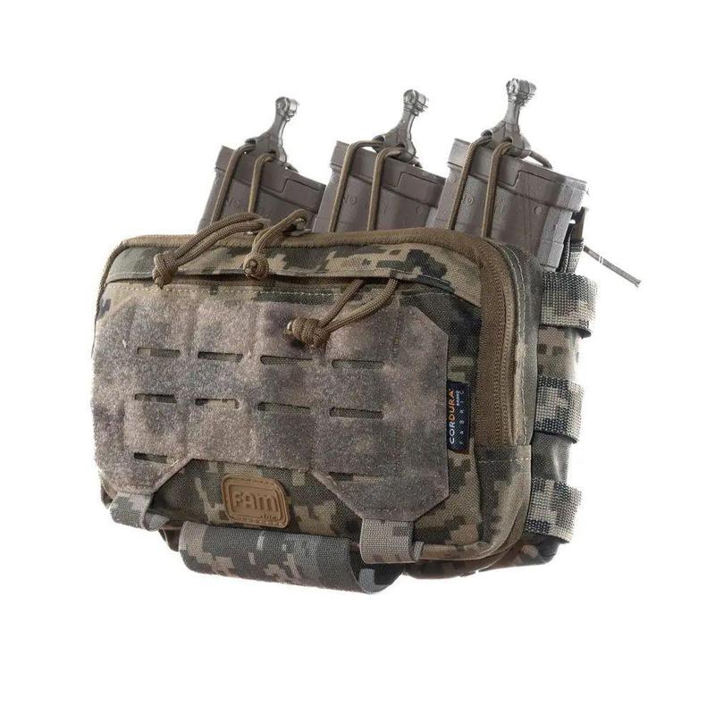 Внимание важна информация Крепится на плитоноску благодаря системи Velcro. Тройной итог под магазины АК/AR вместе с админ подсумком, разработана для максимального удобства. Сделан он из Cordura 1000d с IRR покрытием что делает его невыраженным в приборах ночного видения. Для размещения патчей и идентификаторов имеет Velcro панель. За надежность отвечает лучшая фурнитура от Woojin, YKK и MaxZIP. Крепится на плитоноску благодаря системи Velcro. Подсумок доступен в цвете мультикам. пиксель и койот. Характеристики Ткань Cordura 1000d с IRR пропиткой Стропа Полиамид 100% Молния Max Zip Бегунки Woojin Пластиковая фурнитура Woojin Велкро панель Так Крепление MOLLE Да Наличие скоросвала Нет