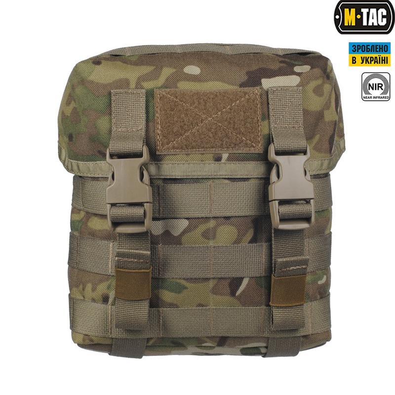 M-Tac підсумок "Сухарка" можна використовувати як оперативну міську, польову чи штурмову сумку (для розміщення протигаза, альпіністського спорядження та ін.). Сумісна з системами кріплення M.O.L.L.E., A.L.I.C.E., M.A.L.I.C.E., BTS, S.T.R.I.K.E., УМТБС. Клапан сумки капюшонного типу виконаний таким чином, щоб запобігти втраті майна. У той же час можливий доступ всередину сумки без розстібання пряжок. Сумка з боків і на верхній частині клапана оснащена M.O.L.L.E.-інтерфейсом, що дозволяє встановлювати на неї додаткові підсумки для спорядження і боєкомплекту. У верхній частині сумки знаходиться ручка для перенесення. Сорт 2 означає, що при перевірці відділом якості бренду M-Tac дані підсумки не відповідають усім критеріям якості якими керуються фахівці бренду. Більшість вітчизняних брендів на подібні моменти не звертає уваги , але M-Tac притримується рівня якості всесвітньо відомих брендів і присвоює такій продукції сорт 2. Розміри:Висота:28 см. Ширина:20 см. Глибина: 8 см Матеріал:Нейлон 1000D Липучки(Велкро):YKK Нитки:нейлонова нитка Polyart Фурнітура:2М Система кріплення:MOLLE Технології NIR compliant (невидимий в ІЧ-спектрі)