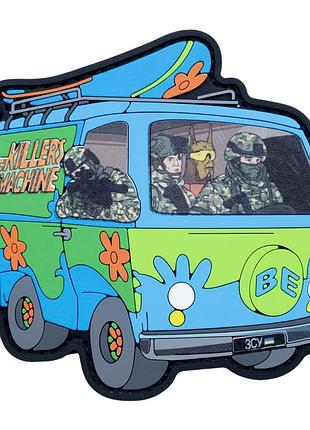ПВХ патч "The Killers Machine" вдохновлен легендарным мультфильмом "Скуби-Ду", но с украинским военным настроением. На нём изображены наши защитники, отправляющиеся на важную миссию в фургоне, который стал "Машиной для убийств". Цветовая схема и детали напоминают атмосферу мультфильма, но вместо детективов за рулём – настоящие герои, готовые выполнить задачу. Этот патч символизирует дух приключений и борьбы за свободу, добавляя украинский характер в известную концепцию. Характеристики: - Длина: 7,5 см - Ширина: 9 см - Вес: 15,15 г - Материал: ПВХ - Прошивка по контуру: Да