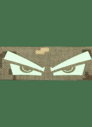 Патч на липучці Очі Самурая, від Camotec, який світиться в темряві. Патч вироблено з міцної та зносостійкої кордури. Точний та якісний малюнок зроблено за допомогою високоточної, комп’ютерної різки, що полягає в тому, що отвори прорізаються в матеріалі лазером, дозволяючи досягти чітких ліній та рівних країв, що не тріскаються. Між шаром кардури та липучкою велкро, яка є зворотним боком нашивки, вклеєний прогумований матеріал, здатний накопичувати світловий заряд і світитися у темряві. Малюнок не нанесений на нашивку, а утворюються завдяки вставці, що проглядає з прорізів кордури. Це робить нашивку міцною, а зображення – стійким до стирання. Матеріал: Кордура Розміри: 2.5 см на 8 см