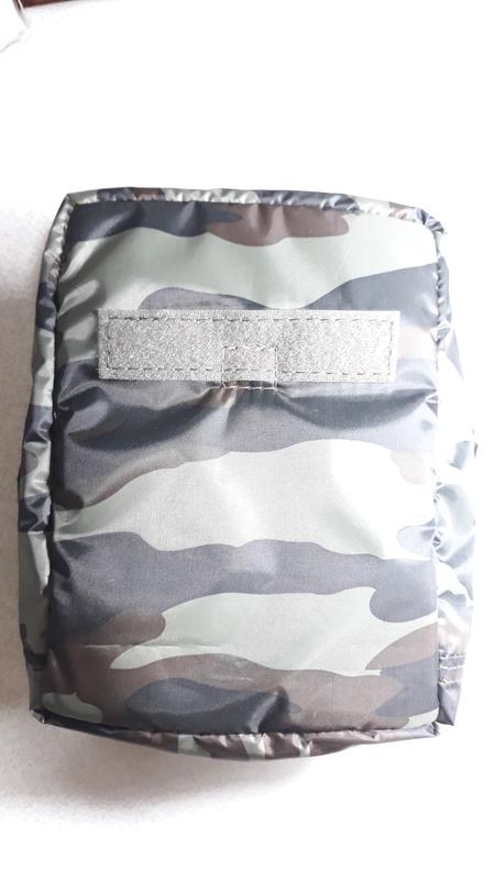 Изготовлена из водоотталкивающей ткани. Размер 20×15×8. Внутри 3 кармана, два с одной стороны, один с другой, на подкладке, 2 бегунка для удобного использования.