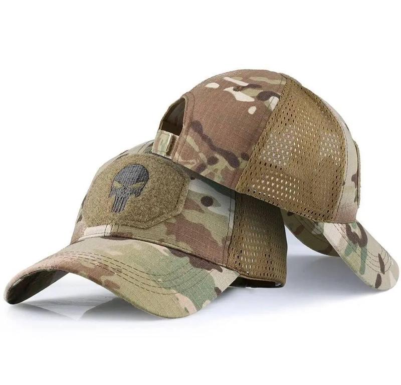 Бейсболка тактична «Punisher» Rip-Stop Multicam 2.0 Артикул : Розмір : Універсальний Бейсболка «Punisher» Rip-Stop Мультикам Тактична бейсболка з міцного матеріалу Ріпстоп. На боках є вставки з сітки, що покращує циркуляцію повітря. Бейсболка має липучки для знаків розрізнення та нашивок: спереду, зверху, та ззаду. Універсальний розмір (обхват голови 56–60 см). Прання: ручне прання в холодній воді