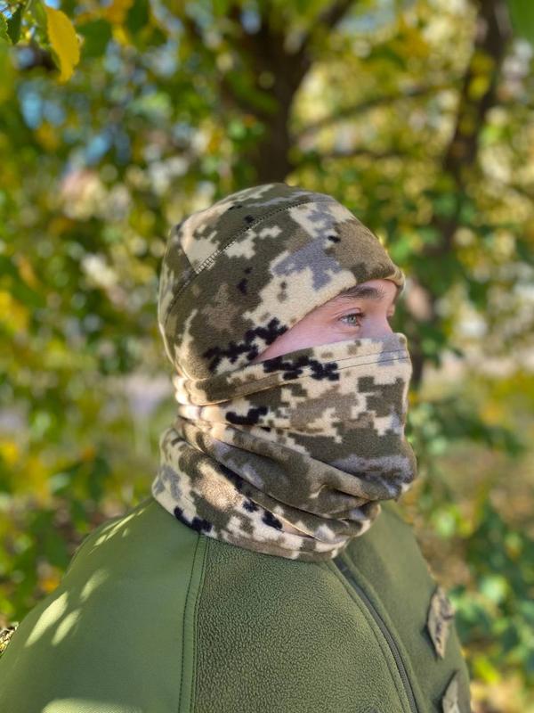Тепла тактична шапка зі щільного якісного флісу. М'який приємний на дотик матеріал чудово зберігає тепло і відводить вологу. Шапка щільно сидить на голові. Флісова шапка підходить для щоденного використання на свіжому повітрі, для походів, полювання, туризму, гірськолижного спорту тощо. Також використовується воєнізованими та силовими структурами як частина одягу, що надійно зберігає голову в теплі та як підшоломник за потреби. Особливості: - універсальна; - може використовуватись як підшоломник; - можна використовувати як з форменим одягом, так і у повсякденному житті; - матеріал не викликає подразнення, добре відводить надлишки вологи. Характеристика: - Розмір - 55-57; - Матеріал - фліс; - Щільність - 300 гр/м; - Колір - піксель; - Сезон - всесезонна.