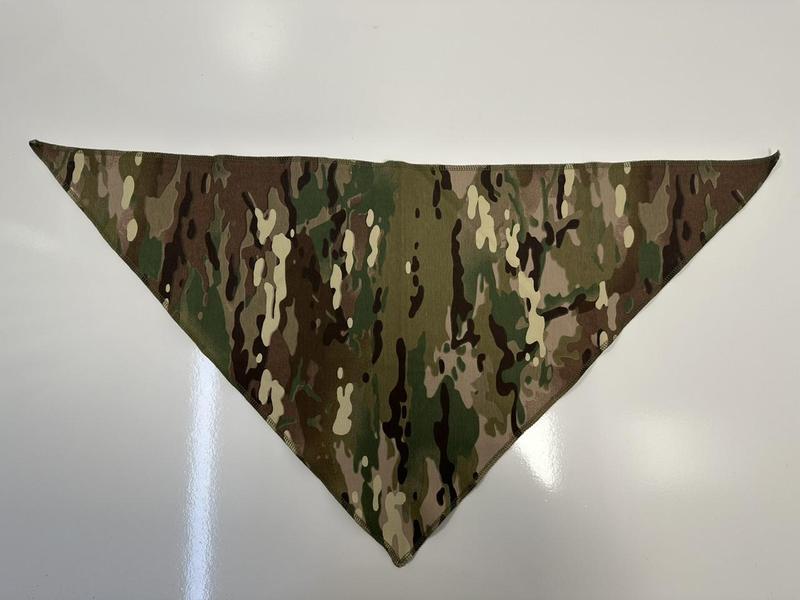 Колір - мультикам. У наявності кольори: піксель, олива, мультикам, чорні. Бандану можна носити на голові або використовувати її як пов'язку для приховування обличчя. Особливості: - не парить; - приємна до тіла; - зручна у використанні; - тканина чудово дихає і швидко сохне. Багатофункціональність. Виріб може використовуватися: - як самостійний головний убір; - в якості маскувального елементу обличчя; - як захисну маску в сильно запиленій місцевості; Характеристики: - матеріал володіє достатнім рівнем міцності і стійкості до стирання; - колір олива, піксель, мультикам; - у розкладеному стані бандана є трикутником 88х42 ; - трикотаж кулір, 100% бавовна