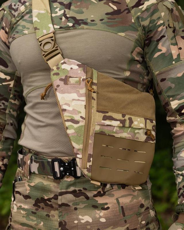 Ткань: 100% полиэстер Параметры: высота = 29 см, ширина = 17 см, глубина = 3 см. - Тактический мессенджер, изготовленный из качественной ткани на водонепроницаемой мембране, которая обеспечит защиту Ваших вещей даже при сложных погодных условиях; - Основное отделение застегивается на молнию. Внутри дополнительный карман для важных вещей; - Спереди вместительный карман на молнии, оснащенный стенкой из мягкой липучки для крепления кобуры; - Дополнительный скрытый карман на молнии для мелких вещей; - Система MOLLE для крепления аксессуаров, карабинов и т.д.; - Мягкая спинка и ручка сумки, с функцией терморегуляции, что обеспечит комфортное использование; - Объем ручки регулируется пряжкой; - Использована только качественная фурнитура; - На каждом бегунке присутствуют массивные пуллеры для удобства при открытии/закрытии карманов; - Подходит для повседневного пользования, путешествий, альпинизма, тактических задач и т.д.