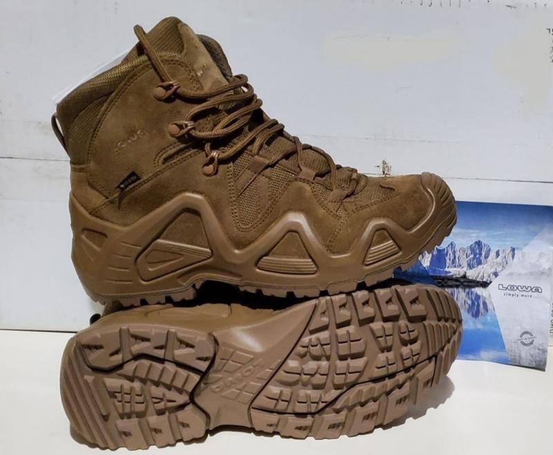 ОРИГИНАЛЬНЫЕ ЧЕРЕВИКИ LOWA ZEPHYR GTX MID TF COYOTE OP Ромир: 43,5 (на стопу 273мм) Новые, без оригинальной коробки. *влагозащитная мембрана - Gore-Tex® *подошва - Lowa Cross *между подошва - Lowa Monowrap® *шнуровка - закрытые петли-крючки *вес пары (размер UK 8) - 1,120 кг *Стелька - съемная трехслойная Climate Control *материал верха - 100% натуральная кожа (замша), синтетические элементы Демисезонные ботинки Zephyr GTX MID TF – это легендарная модель, которая представлена на рынке уже более 10 лет. Их активно использовали спецподразделение США и коалиционных сил во время Афганской, Иракской и Сириниской кампаний, где эти ботинки показали себя как сверхпрочная, комфортная и функциональная тактическая военная обувь. Основная сфера использования – передвижение по местности с разнообразными типами покрытия, в сложных условиях, с грузами и т.д. Данная модель обеспечивает комфорт при ходьбе как легкие походные ботинки, но при этом обеспечивают хорошую фиксацию голеностопа и защиту ноги в целом, как в жестких треккинговых моделях. Это многослойная конструкция, где продумана каждая деталь. Верхняя часть ботинка изготовлена из комбинации натуральной замши с текстильными вставками. Замша это прочный материал, который обладает хорошими паропроницаемыми и влагозащитными свойствами, а текстильные элементы еще и уменьшают вес ботинок. Внутри ботинок расположена влагозащитная мембрана Gore-Tex®, она гарантирует защиту ног от осадков и хорошую паропроницаемость при любых условиях. Самое важное, что отличает эту мембрану от аналогов – контроль и высокое технологическое качество производства на каждом этапе. Между основным материалом и мембраной имеется слой специальной пены с закрытыми порами. Этот материал не имеет губкообразной структуры, поэтому не впитывает влагу и сохраняет ноги в сухости. Межподошва Lowa Monowrap® – это трехмерная конструкция, которая расположена между верхом и подошвой. Она обеспечивает стабилизацию, боковую защиту ноги, а также создает естественный подъем голеностопа от носка до пятки с технологией Stability Frame. Подошва тактических военных ботинок Lowa Zephyr – это литая конструкция, которая сочетает различные слои, чтобы обеспечить максимальный комфорт, защиту и поддержку стопы. Подошва Lowa Cross состоит из оптимизированной резиновой смеси для надежного сцепления на различных поверхностях. Протектор Lowa Rubber Outsole обладает самоочищающимися свойствами и хорошо работает как на грунте, так и на асфальтовом покрытии. Все слои соединяются между собой посредством технически сложного процесса литья. Так верхняя часть ботинка помещается в специально разработанную форму, а затем в нее заливаются различные слои из пенополиуретана. Таким образом верх, межподошва и подошва соединяются и образуют надежную цельную конструкцию. Шнуровка в тактической модели обуви Zephyr представлена системой закрытых крючков, надежно фиксирующих ногу. Они направляют шнурки и не дают им зацепиться при соприкосновении со сторонними предметами. Такое сочетание сверхпрочных и высококачественных материалов, запатентованных технологий и проверенная годами конструкция, создает отличные ботинки для любых видов активности.