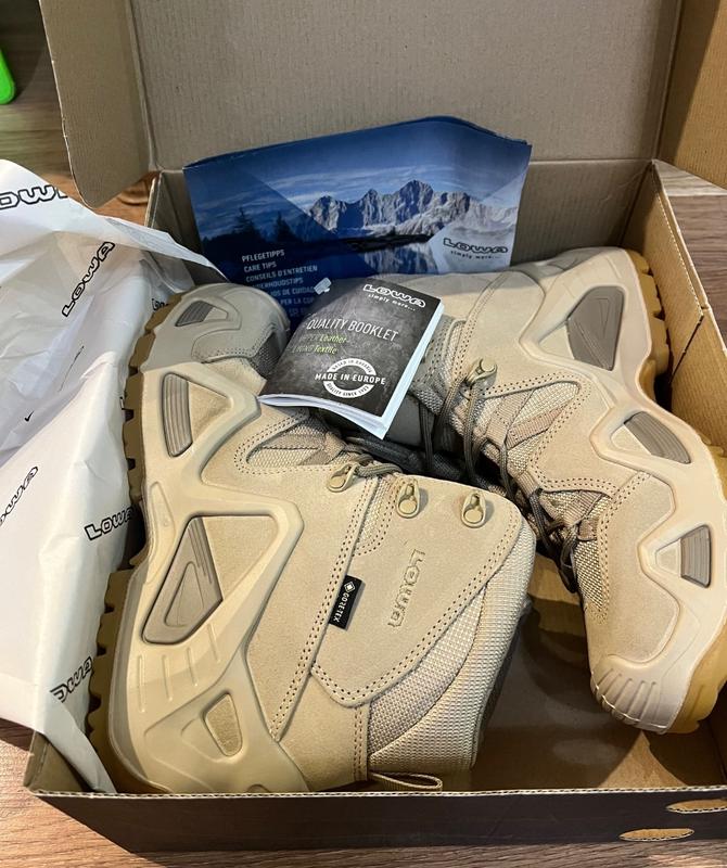 Демисезонные ботинки Zephyr GTX MID TF – это легендарная модель, которая представлена на рынке уже более 10 лет. Их активно использовали спецподразделение США и коалиционных сил во время Афганской, Иракской и Сириниской кампаний, где эти ботинки показали себя как сверхпрочная, комфортная и функциональная тактическая военная обувь. Основная сфера использования – передвижение по местности с разнообразными типами покрытия, в сложных условиях, с грузами и т.д. Данная модель обеспечивает комфорт при ходьбе как легкие походные ботинки, но при этом обеспечивают хорошую фиксацию голеностопа и защиту ноги в целом, как в жестких треккинговых моделях. Это многослойная конструкция, где продумана каждая деталь. Верхняя часть ботинка изготовлена из комбинации натуральной замши с текстильными вставками. Замша это прочный материал, который обладает хорошими паропроницаемыми и влагозащитными свойствами, а текстильные элементы еще и уменьшают вес ботинок. Внутри ботинок расположена влагозащитная мембрана Gore-Tex®, она гарантирует защиту ног от осадков и хорошую паропроницаемость при любых условиях. Самое важное, что отличает эту мембрану от аналогов – контроль и высокое технологическое качество производства на каждом этапе. Между основным материалом и мембраной имеется слой специальной пены с закрытыми порами. Этот материал не имеет губкообразной структуры, поэтому не впитывает влагу и сохраняет ноги в сухости. Межподошва Lowa Monowrap® – это трехмерная конструкция, которая расположена между верхом и подошвой. Она обеспечивает стабилизацию, боковую защиту ноги, а также создает естественный подъем голеностопа от носка до пятки с технологией Stability Frame. Подошва тактических военных ботинок Lowa Zephyr – это литая конструкция, которая сочетает различные слои, чтобы обеспечить максимальный комфорт, защиту и поддержку стопы. Подошва Lowa Cross состоит из оптимизированной резиновой смеси для надежного сцепления на различных поверхностях. Протектор Lowa Rubber Outsole обладает самоочищающимися свойствами и хорошо работает как на грунте, так и на асфальтовом покрытии. Все слои соединяются между собой посредством технически сложного процесса литья. Так верхняя часть ботинка помещается в специально разработанную форму, а затем в нее заливаются различные слои из пенополиуретана. Таким образом верх, межподошва и подошва соединяются и образуют надежную цельную конструкцию. Шнуровка в тактической модели обуви Zephyr представлена системой закрытых крючков, надежно фиксирующих ногу. Они направляют шнурки и не дают им зацепиться при соприкосновении со сторонними предметами. Такое сочетание сверхпрочных и высококачественных материалов, запатентованных технологий и проверенная годами конструкция, создает отличные ботинки для любых видов активности.